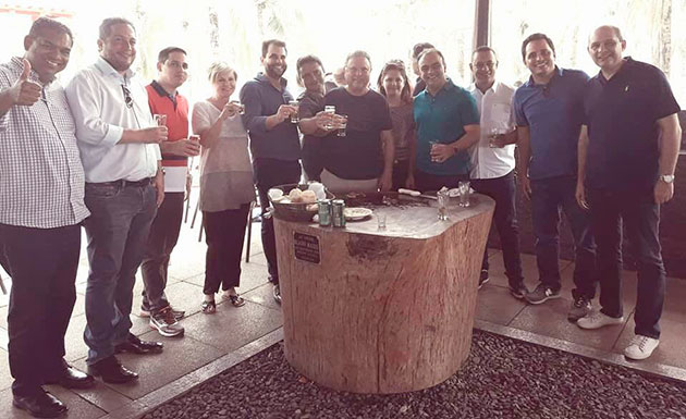 Membros do diretório estadual do PP, sob liderança de Blairo Maggi, em reunião na sexta, antes de um churrasco